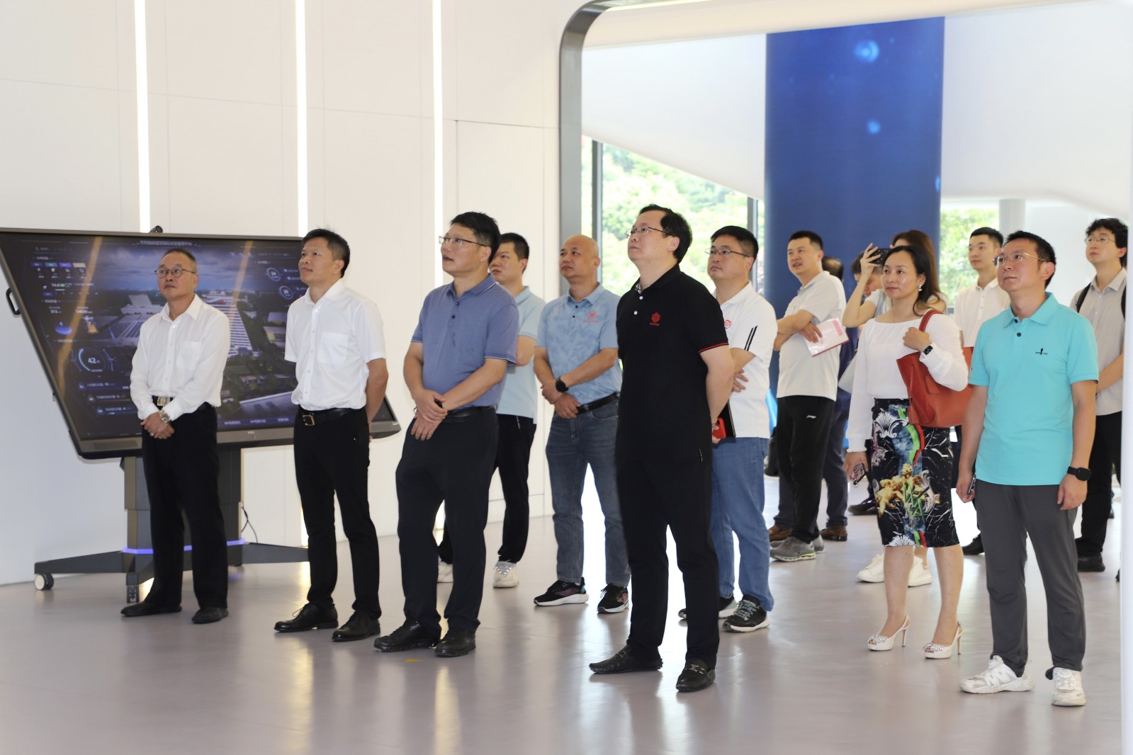 尹朝银副主任一行首先参观了365英国上市智能展示中心,详细听取了公司在智慧安全、智慧城市、人工智能和低空经济等领域的技术实力和创新成果,包括365英国上市智能自主研发的常青云计算平台、无人机管控系统、动态人脸识别分析系统、AI行为分析系统等前沿技术产品。